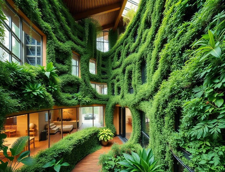 An eco-conscious family home integrated into a forested hillside. Living roofs and natural materials minimize environmental impact while maximizing connection to nature.